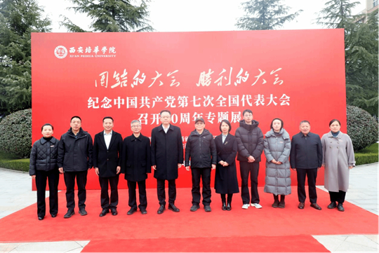 为继承和发扬党的优良传统和作风,赓续传承延安精神,12月22日下午,西安培华学院与陕西省延安精神研究会联合举办“团结的大会、胜利的大会”——庆祝中国共产党第七次全国代表大会召开80周年专题展,陕西省延安精神研究会副会长兼高校企业委员会主任、陕西省委巡视组原组长郑仲,研究会副秘书长兼办公室副主任李季,工作人员牛荣超,西安培华学院理事长姜波,西安培华学院党委书记、政府督导专员刘锋,学工部副部长杨媛,党工部部长助理王萌,宣传部副部长霍元敏,马克思主义学院副院长寇军强,以及部分师生代表约200人参加专题展开幕式。校团委书记董莹主持开幕式。