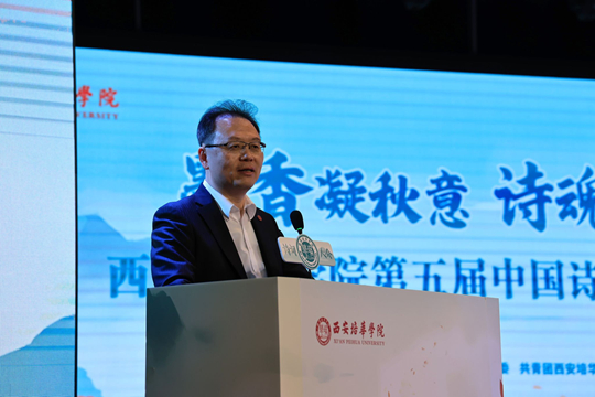 理事长姜波致欢迎词。他阐述了中华诗词作为民族精神瑰宝的永恒价值,并表示,从“培华夏之根”的建校初心,到“育时代新人”的当代追求,培华始终将人文精神的培育放在重要位置,将中华优秀传统文化的传承融入育人全过程。他勉励广大青年以诗为舟,在浩瀚的文化海洋中涵养性情、陶冶情操;以诗为镜,让青春在传统文化的深刻浸润中,焕发绚丽的光彩,成为有底蕴、有格局的时代新人。