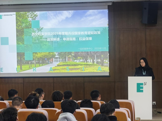 精准的保障是消除后顾之忧的关键。西安欧亚学院学生资助管理中心专员郭晓慧老师随后登台,聚焦同学们最为关切的学业与经济支持问题,对“服兵役国家教育资助政策”进行了专业细致的解读。她从资助政策的具体内容、申请流程指南到学校的对接部门与资源平台,都做了清晰的说明,学校也将为入伍学生提供“一站式”全流程服务,确保每位有志学子都能“轻装上阵”,安心报国。