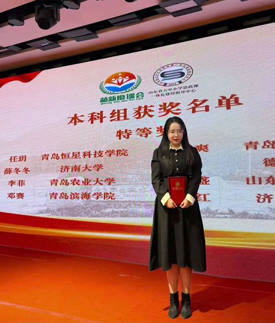 2025年12月5日,山东省高校思想政治理论课教学指导委员会主办的2025年度“萌新磨课总会”在青岛圆满落幕。在此次规模盛大、竞争激烈的省级教学竞赛中,青岛恒星科技学院任玥老师凭借扎实的理论功底、精湛的教学技艺、独特的教学设计与出色的现场表现,一路披荆斩棘,在150余所高校中脱颖而出,最终以全省参赛教师最高分的优异成绩,荣获省级特等奖第一名,展现了青岛恒星科技学院马院思政课教师卓越的教学风采与深厚的育人素养。