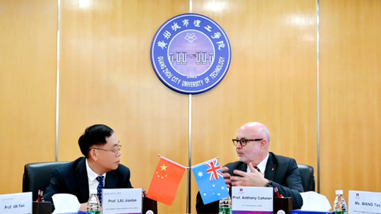 Anthony Cahalan对广州城市理工学院的热情接待表示感谢,并介绍了麦考瑞大学的办学优势。他指出,麦考瑞大学已跻身全球前1%大学的行列,且近年来在各类世界大学排名中呈现不断上升的良好势头;麦考瑞大学以应用型教学与研究为办学特色,注重培养学生的实践应用能力,校园设施完善,多元的文化氛围对学生非常友好。他表示:“麦考瑞大学致力于在全球寻求理念相似的院校建立合作关系,广州城市理工学院与麦考瑞大学在培养高素质应用型人才、积极开展国际合作等方面非常吻合,期待两校共同推进合作。”