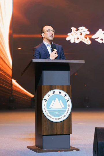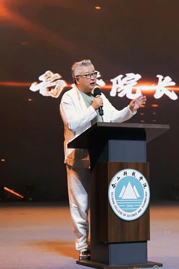 常务副校长谢承红指出,小柯老师及其团队将首个小柯剧场音乐剧学院(泰山科技学院)落户泰山科技学院,是对学校的信任和厚爱。他向小柯老师及其团队表达最崇高的敬意和感谢!谢承红讲到,源于董事长彭鸿斌博士的精准设计,近年来学校音乐剧教育事业蓬勃发展,一批原创高水平有影响的音乐剧作品持续浸润和帮助着同学们成长,与小柯剧场的合作,是学校推进校企合作、产教融合战略的关键一步,必将促进学校艺术教育和音乐剧教育里程碑式的发展。他期待大家共同努力,将小柯剧场音乐剧学院(泰山科技学院)打造成最实战、最引领、最暖心的音乐剧学院。