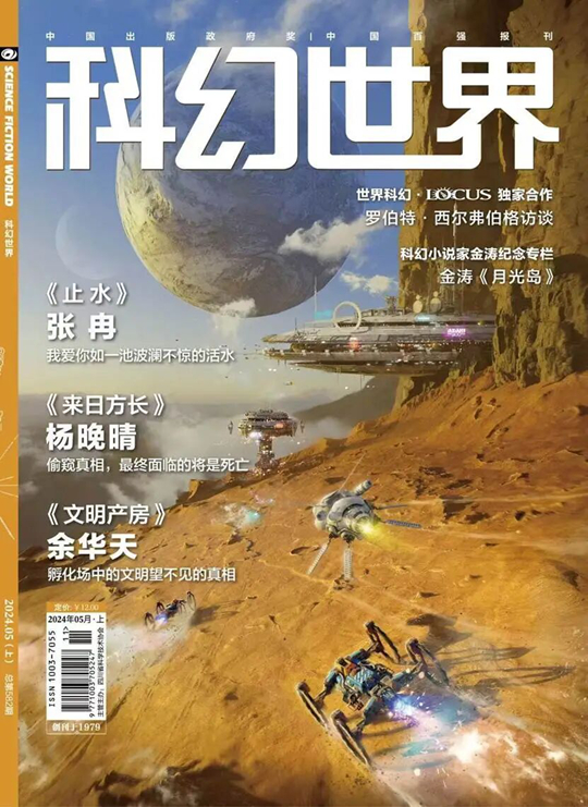 《止水》刊登于《科幻世界》2024年第5期,讲述了一个关于时间、记忆与人类情感的故事——一位编剧母亲通过虚拟人生技术,为身患渐冻症的儿子编织了六十年的完整人生的故事,通过母亲的编织,儿子在止水系统的协助下度过了普通但幸福的一生,而病房外的母亲也同时陪伴着儿子度过了临终的最后时日。
