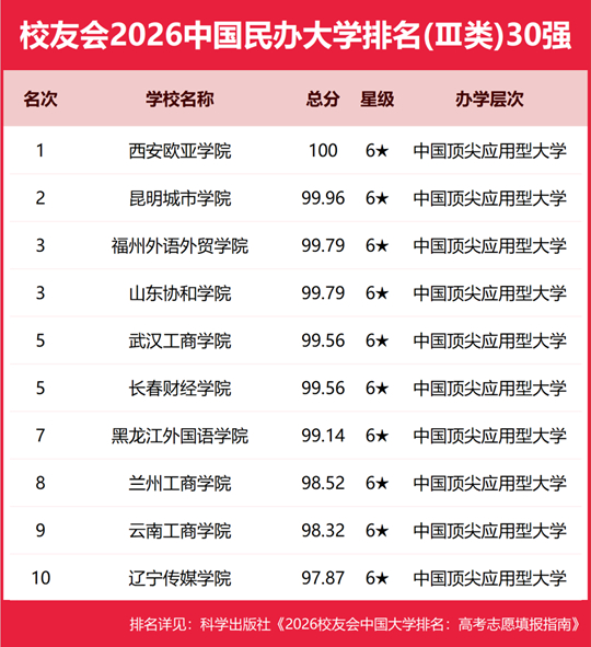 校友会2026中国民办大学排名Ⅲ类(部分)