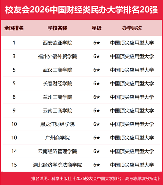 校友会2026中国财经类民办大学排名(部分)