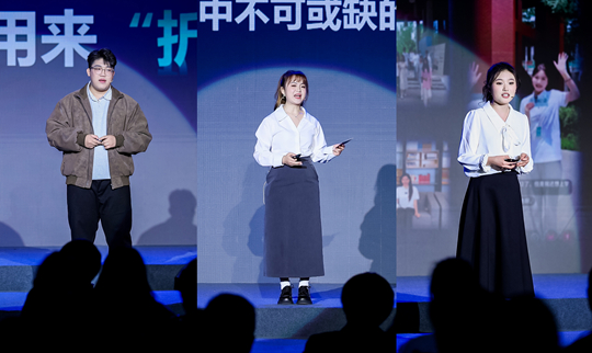 图2 欧亚学生年度盛典现场,金明宇、吴潘宁、郭琪昂三位同学<依次从左至右>在作分享