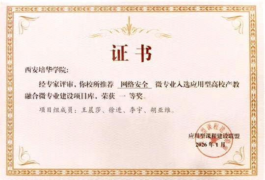 网络安全微专业荣获一等奖证书