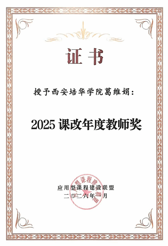 课改年度教师奖证书