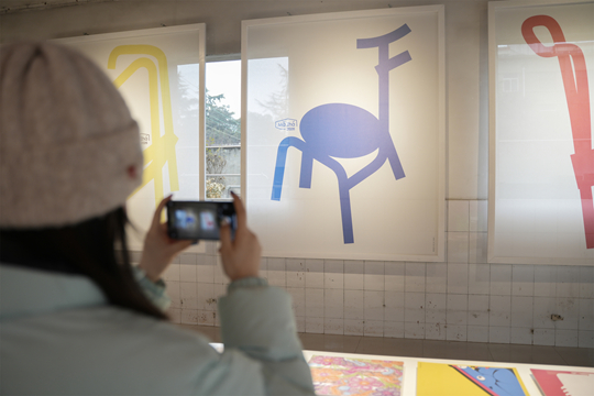 从封闭展陈空间走向开放的西仓园区,光影交叠在“马”形状的文创玩偶上,观展者纷纷拍照留念。马形亚克力装置悬浮于展厅中央,与后侧平面展板错落呼应、虚实相生,构建出层次丰富的立体视觉格局,让设计感浸润在每一处细节里,既彰显着“马”灵动朝气的属性,也让传统文化在现代装置的容器中焕新绽放。