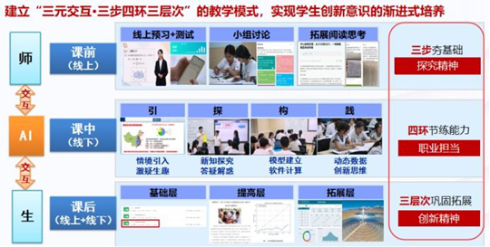团队成员唐明教授的办公室里挂着一张特殊的“课程地图”,密密麻麻的线条连接着每一个知识点和行业里的真实岗位需求。他常说:“不能让学生出了校门,才发现学的用不上”。为了这张“地图”,他和团队跑遍了合作企业,把实际工作流程拆解成一个个教学项目,学生从“听他讲”变成“我来干”,在解决一个又一个真实任务中,把知识“长”成了本事。冯晶晶教授的创新教学模式也很受学生喜欢,课前通过线上预习、小组讨论和拓展阅读夯实根基,课中以“引、探、构、践”四环节锤炼能力,课后分层巩固提升,凭借这一探索,她荣获第五届陕西省大学数学课程教学创新竞赛一等奖。有毕业生回校看望毛莉君时说:“毛老师,上班第一天,我就觉得这活儿我干过!”正因如此,团队打造的课程体系与行业发展趋势高度匹配,实现了教学内容与岗位需求精准对接。