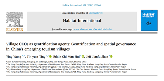 近日,西安欧亚学院艾德艺术学院王瑛副教授及其研究团队在SSCI一区顶级期刊《Habitat International》上发表题为“Village