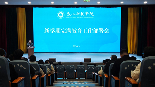 为紧扣学校发展实际,谋划部署新学期完满教育工作,3月9日上午,泰山科技学院新学期完满教育工作部署会在青未了剧场召开。