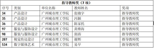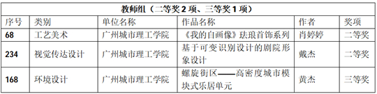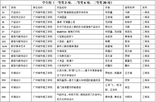 广州城市理工学院师生获奖名单(陈政甫 提供)