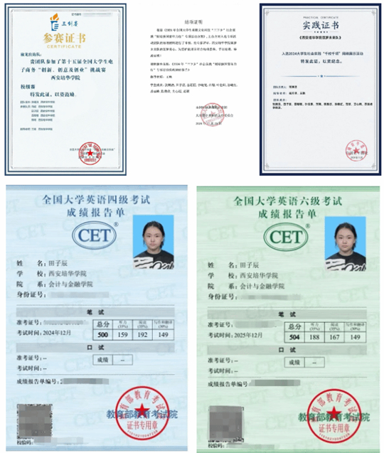 英语学习路上,田子辰是大家的“小老师”。她坚持每天背诵50个单词、进行听力精练,累计完成30余套真题,最终以500分、504分通过英语四六级考试。她还带着室友张婧洁一起制定提分计划,每天练习口语、复盘错题、互相批改作文,帮助张婧洁的六级成绩从359分提升到451分。
