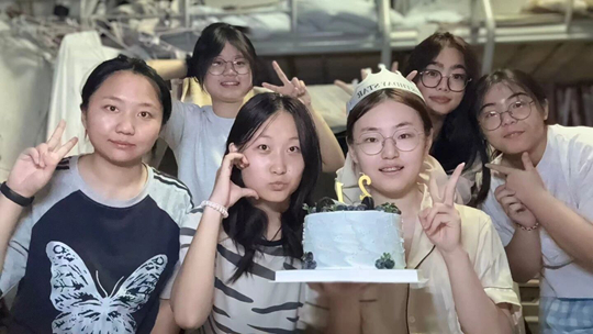 孙晓红永远忘不了大二下学期那个普通的傍晚。她一个人在宿舍背单词,舍友们说出去买饭了。突然听见门口有人喊她,她准备开门的瞬间,灯黑了。下一秒,她们捧着生日蛋糕走进来,手机手电筒的光亮像星星一样闪烁。“那是我从小到大,最难忘的一次生日。”