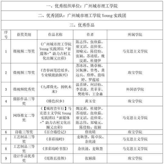 | 广州城市理工学院在2025年“多彩乡村 向新而行”实践活动中荣获多项荣誉 |