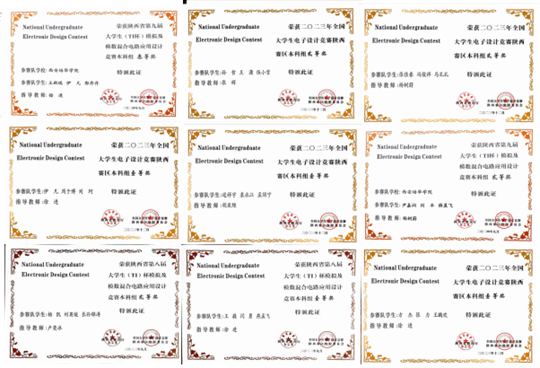 全国大学生电子设计大赛获奖证书