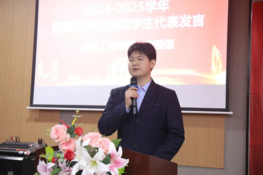 获奖学生代表安毅恒在发言中分享了自身的成长经历与奋斗感悟,表达了对母校悉心培育的感激之情,并立志锤炼技能、奉献铁道事业,为全体同学树立了身边的榜样。