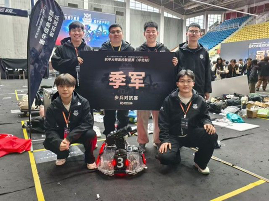 RoboMaster机甲大师高校联盟赛是国内极具影响力、含金量极高的大学生机器人赛事,其中步兵对抗赛更是考验团队技术功底、战术布局与临场应变的比赛项目。面对强手如林的赛场,智驭战队展现出强大的竞技实力与过硬的心理素质。小组赛阶段,队员们沉着应战、稳扎稳打,凭借稳定发挥以小组第一的成绩顺利出线;淘汰赛中,战队根据对手特点及时调整战术,灵活应对各类突发状况,稳步晋级;半决赛面对实力相当的劲旅,队员们顶住压力、默契配合,操控自主研发调试的步兵机器人精准攻防、奋勇争先,最终成功拿下季军。每一场对决,都彰显了队员们日复一日打磨的专业能力与永不言弃的拼搏精神,用汗水与实力书写了“首战即捷”的亮眼答卷,为学校赢得了荣誉。