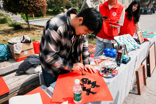 智能工程学院车佳琤同学在展示拓片技艺后感慨:“能在泰山民俗活动现场展示、传承拓片这门非遗手艺,我觉得很有意义。当看到游客们驻足观赏、认真聆听传拓技艺的历史,并亲手尝试操作时,我真切感受到了泰山传拓技艺的魅力与生命力。这次活动让我走出校园,用指尖技艺传递泰山民俗韵味,也让我更加坚定了传承非遗技艺的决心。”
