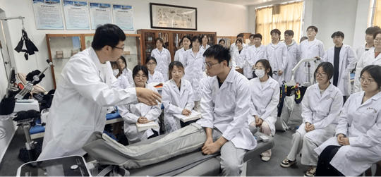 课程建设成果显著:《康复功能评定学》获批AI赋能教学改革试点课程;《康复功能评定学+功能解剖》《作业治疗学》《物理治疗学》《语言治疗学》《传统康复方法学》均获批校级培育(校企合作)课程并已全部结项。专业将临床技术实操、AI虚拟仿真、经典案例研讨融入课堂,强化“理实一体化”教学,把医院康复科、康复诊所(工作室)、康复养老中心的真实场景搬进课堂,实现课堂学习内容与职业工作内容高度匹配。