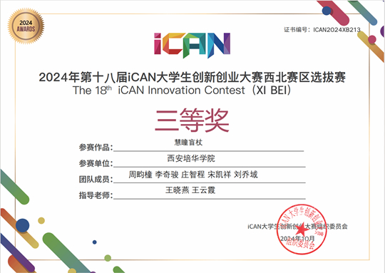 学生在2024年第十八届iCAN大学生创新创业大赛西北赛区选拔赛中获三等奖