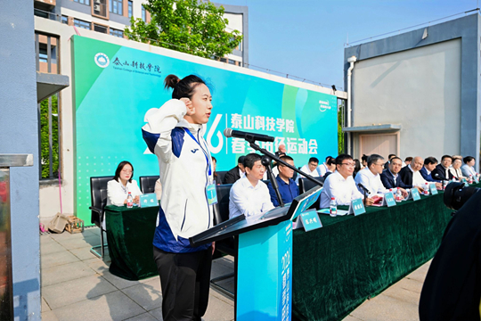 4月23日,泰山科技学院2026年春季田径运动会在学校田径运动场开幕。校长耿献文,党委书记李文喜,常务副校长谢承红,副校长智英斌、丁海奎、曾广晟,校长助理解嵘、武浩然,山口镇教育党委委员、山口镇中心小学书记校长张继溪,山东省委教育工委派驻学校党建工作指导员陈兴明、吴彩云,五汶书院名誉院长王冬妮,学校各职能部门、各学院书院负责人以及裁判员代表、学生运动员代表出席开幕式。