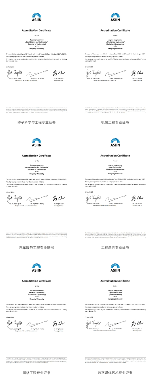 近日,德国权威自然工程与信息学科领域高等教育学位认证机构(ASIIN)正式发布通知,青岛恒星科技学院首批参与认证的种子科学与工程、机械工程、汽车服务工程、工程造价、网络工程以及数字媒体艺术六个专业成功通过德国ASIIN工程教育认证。这不仅标志着该校的专业建设水平获得欧洲专业认证权威机构的高度认可,应用型人才培养与国际接轨迈出了关键一步,更为青岛恒星科技学院培养具备跨国职业资格的高素质工程师奠定了坚实基础。