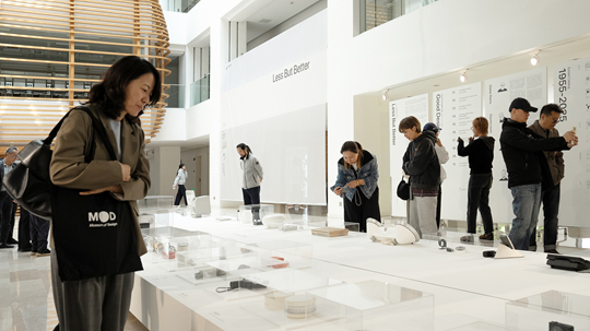 与此同时,展览还展出了多位同期设计大师的作品,几何感鲜明的音响、钢材与皮革结合的座椅、氛围感突出的悬臂灯、苹果的简约产品、深泽直人的经典设计……它们均延续拉姆斯的“克制”,实现东方留白与西方理性的自然衔接。