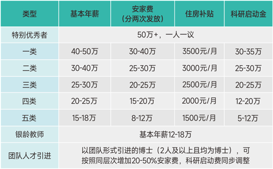 说明:我校博士岗位按照工作重点分为教学型(含银龄教师)、社会服务型、科研型三类,每类岗位均根据博士人才的学术背景、科研成果及发展潜力,对应不同级别的薪酬待遇(共分五类及特别优秀者档、银龄教师档)。薪酬类别根据应聘者过往成果与聘期任务综合评定。