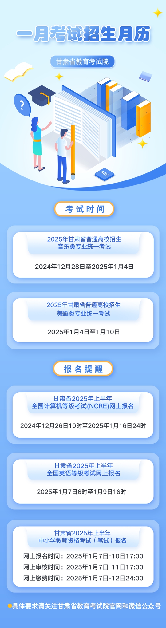 甘肃:一月考试招生月历