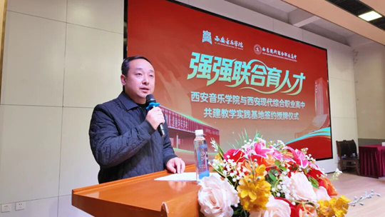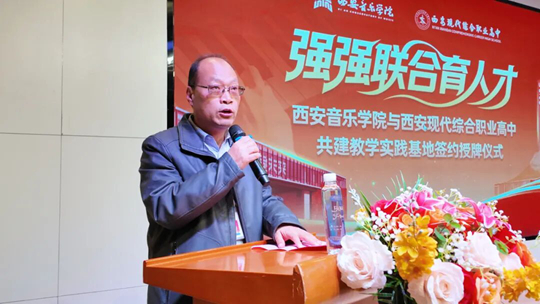 仪式由西安现代综合职业高中党支部副书记、副校长任军主持。学校执行校长马俊仓首先致欢迎词,对西安音乐学院一行的到来表示热烈欢迎。