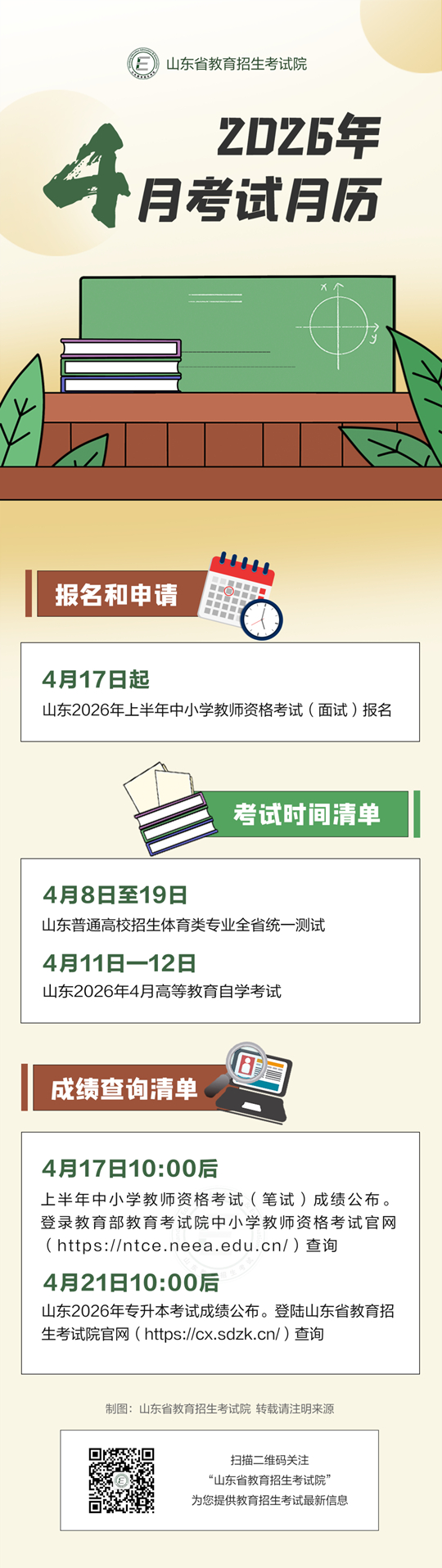 2026年4月山东教育考试月历来了