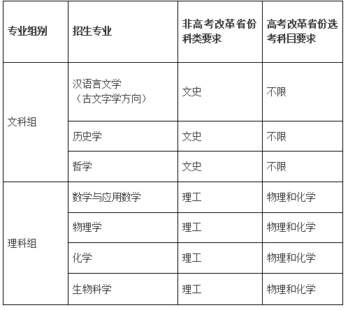 (一)我校基础学科招生改革试点工作在北京师范大学招生委员会领导下,由北京师范大学招生办公室负责具体工作的组织和实施。我校在实施本简章的过程中做到招生方案公开、选拔方法公平、录取标准公示。