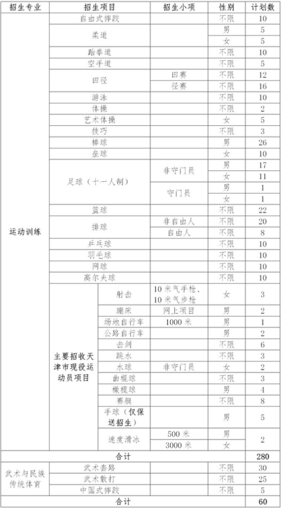 | 天津体育学院2023年运动训练、武术与民族传统体育专业招生项目及分项目招生计划 |