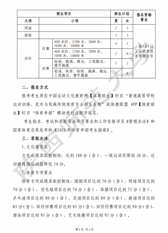 陕西师范大学2026年运动训练专业招生简章