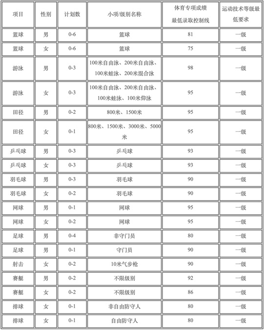 (一)考生的体育专项考试成绩不得低于各招生项目(部分项目分男女)的体育专项成绩最低录取控制线。