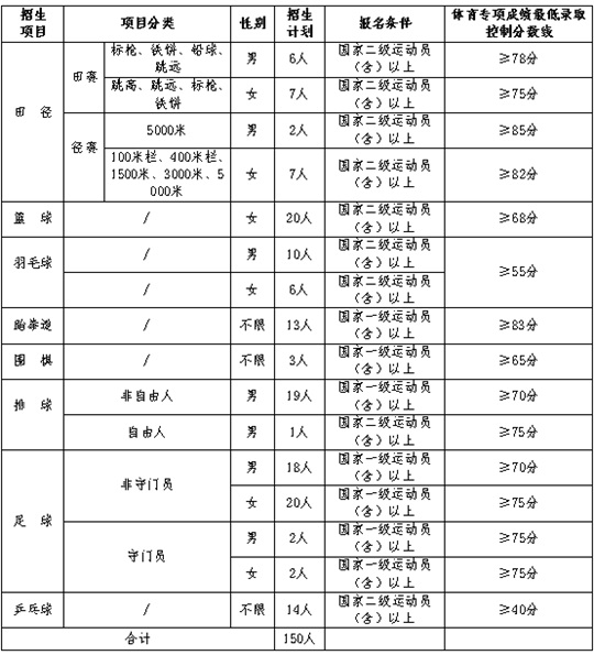 注明:各招生大项中,除表内已列出的小项或项目外,其余均不招。