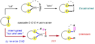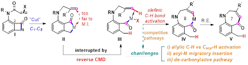图2 Reverse CMD作为关键步骤的串联C-C/Colefin-H键反应