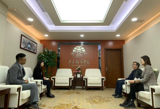 11月14日下午,中国马来西亚商会西安分会名誉会长翟华和秘书长Raymond Raman一行2人来西安翻译学院访问交流。党委副书记、副校长郭炜,国际交流与合作处处长王明明、国际交流科科长刘潇热情接待来宾。