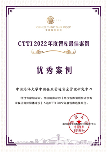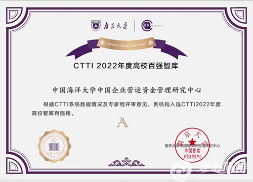 中国海洋大学中国企业营运资金管理研究中心2022年荣获CTTI高校智库百强(A)