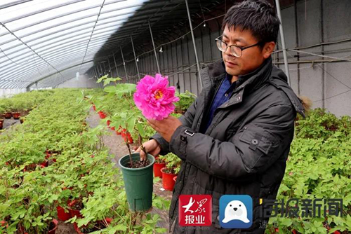 “用我们新研发的牡丹催花模式所培育的牡丹,开花后移栽成活率能大幅提高,同时牡丹花能够开的更加艳丽,花期更长,后续我们将会申报专利,免费供大家使用。”26日下午,大众网•海报新闻记者刚见到田给林,他就介绍起自己的新技术。他的志向在于,通过技术改良,助力菏泽牡丹产业的崛起。