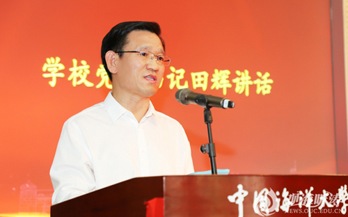 党委书记田辉代表学校向辛勤耕耘在教学科研和管理服务一线的全校教职工、向为学校事业发展做出贡献的离退休老领导、老同志致以节日的问候,向受表彰的教职工表示热烈的祝贺。他指出,今年是学校建设特色显著的世界一流大学的关键一年,全校师生员工统筹抓好疫情防控和事业发展,扎实推进各项工作,取得了出色的成绩。他指出,过去五年是学校办学历程中很不寻常、很不平凡的五年,是学校事业快速发展的五年。全校师生员工攻克了许多事业改革发展中的难题,办成了许多事关长远的大事要事,解决了许多师生急难愁盼的问题,防范化解了一系列风险挑战,取得了一系列标志性成果,圆满完成了学校第十次党代会确定的主要目标任务。希望广大教职工积极参与到学校第十一次党代会的各项准备工作中来,通过党代会总结经验、凝聚共识,擘画未来、振奋精神,激发力量、推动发展。他强调,全校教职工要以迎接学习贯彻党的二十大为主线,以赫崇本、文圣常、管华诗等学校老一辈“大先生”为榜样,传承优良传统,弘扬海大精神,争做“信念坚定、爱国奉献,崇尚学术、潜心育人,崇德守朴、淡泊名利,勇担使命、追求卓越”的“大先生”,奋力在新时代新征程上谱写学校一流大学建设新篇章,以实际行动和优异成绩迎接党的二十大和学校第十一次党代会胜利召开。