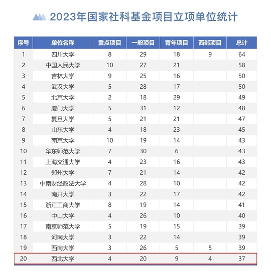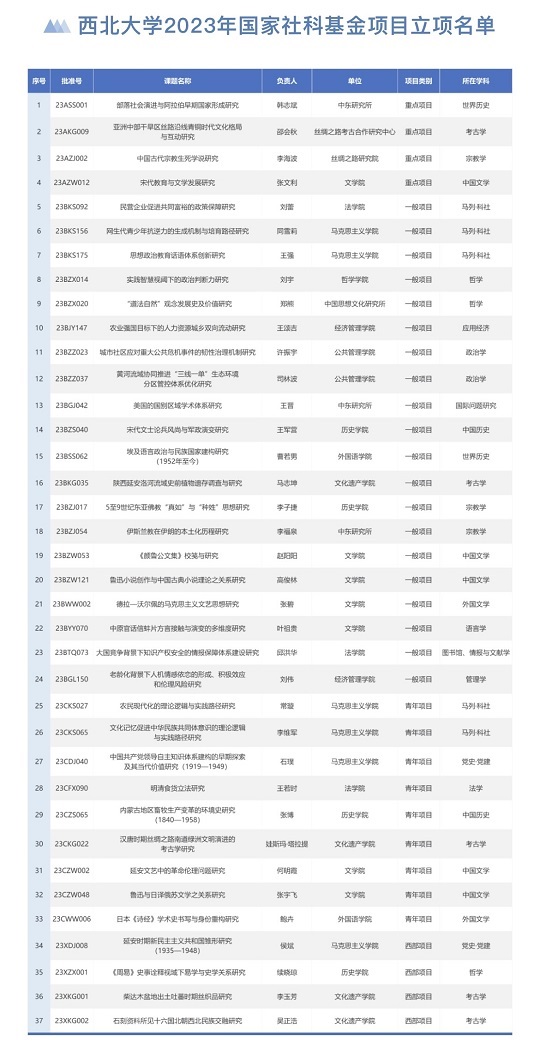 | 西北大学获批国家社科基金项目37项 |