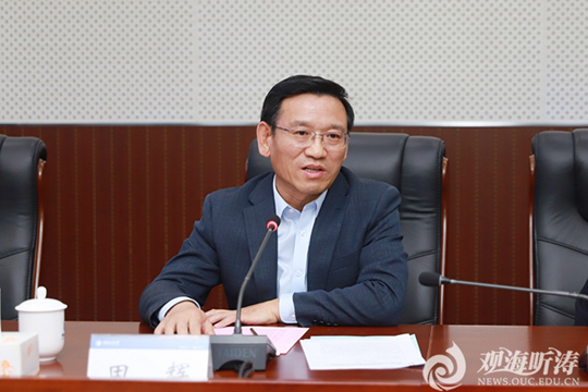 田辉对王卓明一行的到来表示欢迎,对国家粮食和物资储备局山东局对学校一流大学建设的支持表示感谢。他指出,一流大学建设一定要融入国家发展战略、服务“国之大者”。近年来,学校坚持以服务国家为最高追求,不断强化使命担当意识,着力完善服务国家重大战略和区域发展的体制机制,着力打造新时代服务社会的海大经验,学校第十一次党代会作了专门部署。粮食和物资储备事关国计民生和国家安全,服务好这项工作,就是学校服务“国之大者”的重要体现。当前双方在农业强国问题研究、教育培训基地建设、干部培训等方面取得了重要成果,希望双方聚焦国家粮食和物资储备重大战略与政策、管理技术创新和队伍建设等需求开展合作,联合建好东北亚粮食和物资物流研究院,为国家粮食和物资储备事业作出更大贡献,有力服务强国建设和民族复兴。