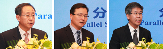 刘俊峰副署长(左)、余勇副司长(中)、范其伟副校长致辞