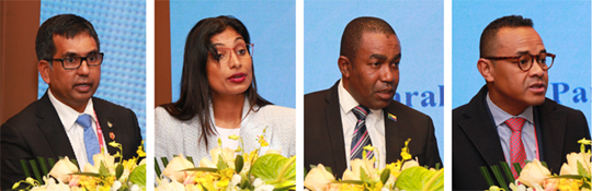 马尔代夫经济发展和贸易部部长萨伊德,塞舌尔投资、企业和工业部部长维多,科摩罗农业、渔业、环境、旅游及手工业部国务部长哈姆丹,马达加斯加外交部秘书长塔依希米亚卡达扎先后在论坛上致辞,介绍了各自国家海洋经济发展的概况,以及国家实现可持续发展所面临的挑战,对中国政府给予他们国家的支持和帮助表示感谢,期待进一步加强与中国的合作关系,共同推进可持续发展。