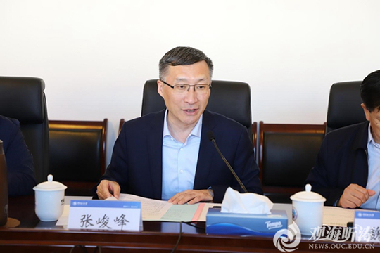 12月8日下午,中国海洋大学青岛海上丝路研究院理事会会议在崂山校区召开。青岛市海洋发展局党组书记、局长孟庆胜,中国海洋大学校长张峻峰出席会议并讲话。青岛市海洋发展局党组成员、副局长戚永战,中国海洋大学副校长魏志强参加会议。