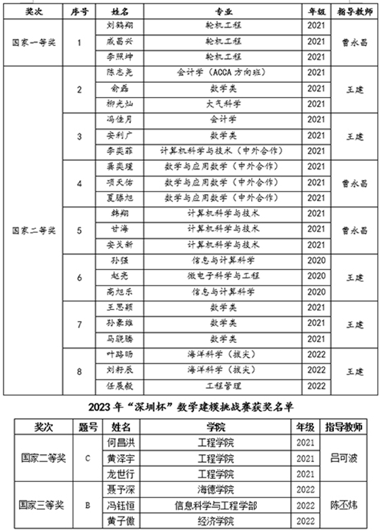 | 中国海洋大学在2023年数学建模系列活动中获佳绩 |