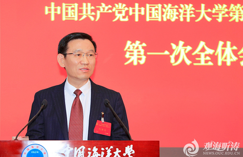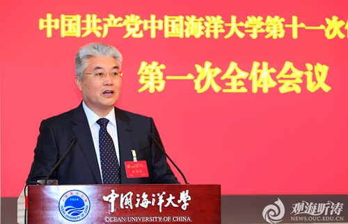 田辉代表中国共产党中国海洋大学第十届委员会向大会作报告